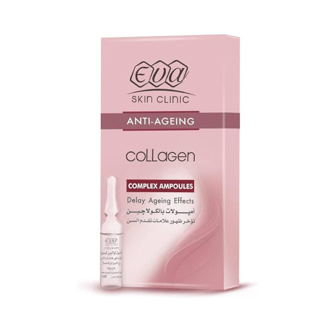 - أمبولات إيفا للعناية بالبشرة غنية بالكولاجين الطبيعي الذي يتغلغل في بشرتك بسهولة وسرعة ويحفز خلايا البشرة وينشطها.